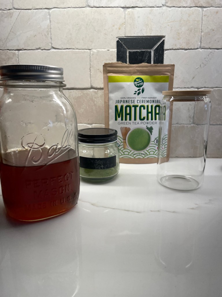 Here is the step-by-step for how I make an Iced Matcha Latte with honey!