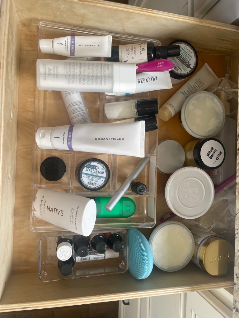 Yesterday morning, I was able to reorganize my bathroom. I reorganized all of the drawers, but I wanted to share a highlight of my makeup and skincare drawers that I reorganized! Below are the before and after pictures.