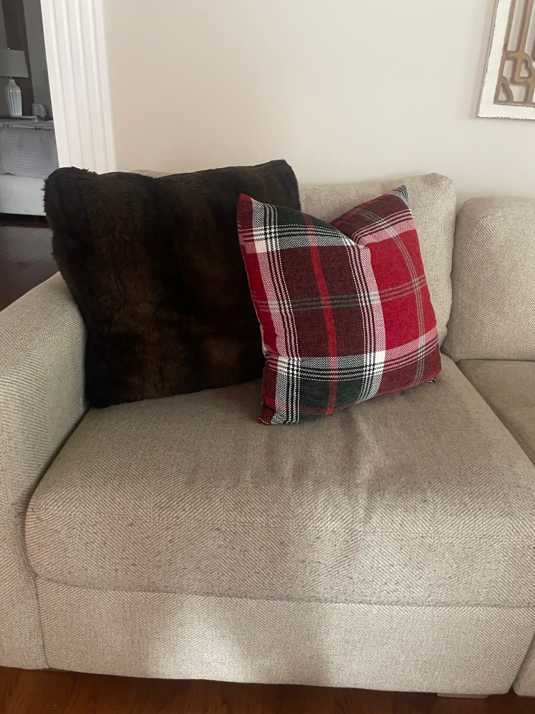 - Plaid Throw Pillow: Bought from Homegoods